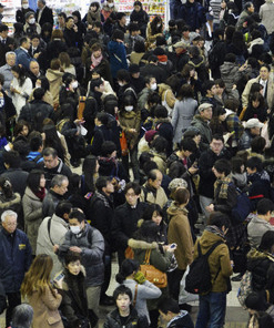 | Pasajeros en la estación de trenes JR Sendai quedarpn varados luego del terremoto de 7.3 grados |